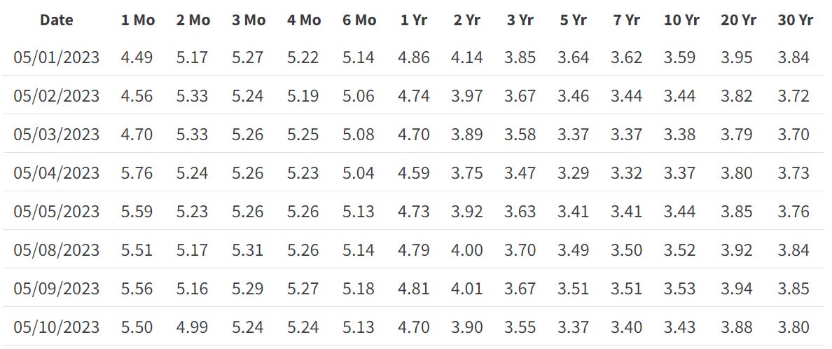 Interestingly, the credit for Tether's recent strides can be largely attributed to the Federal Reserve. Tether's soaring profits are predominantly a consequence of high yields in the bond market, courtesy of the Fed's monetary policy. The yield curve rates may not have been a hot topic lately, but they remain as lucrative as ever, as demonstrated below.